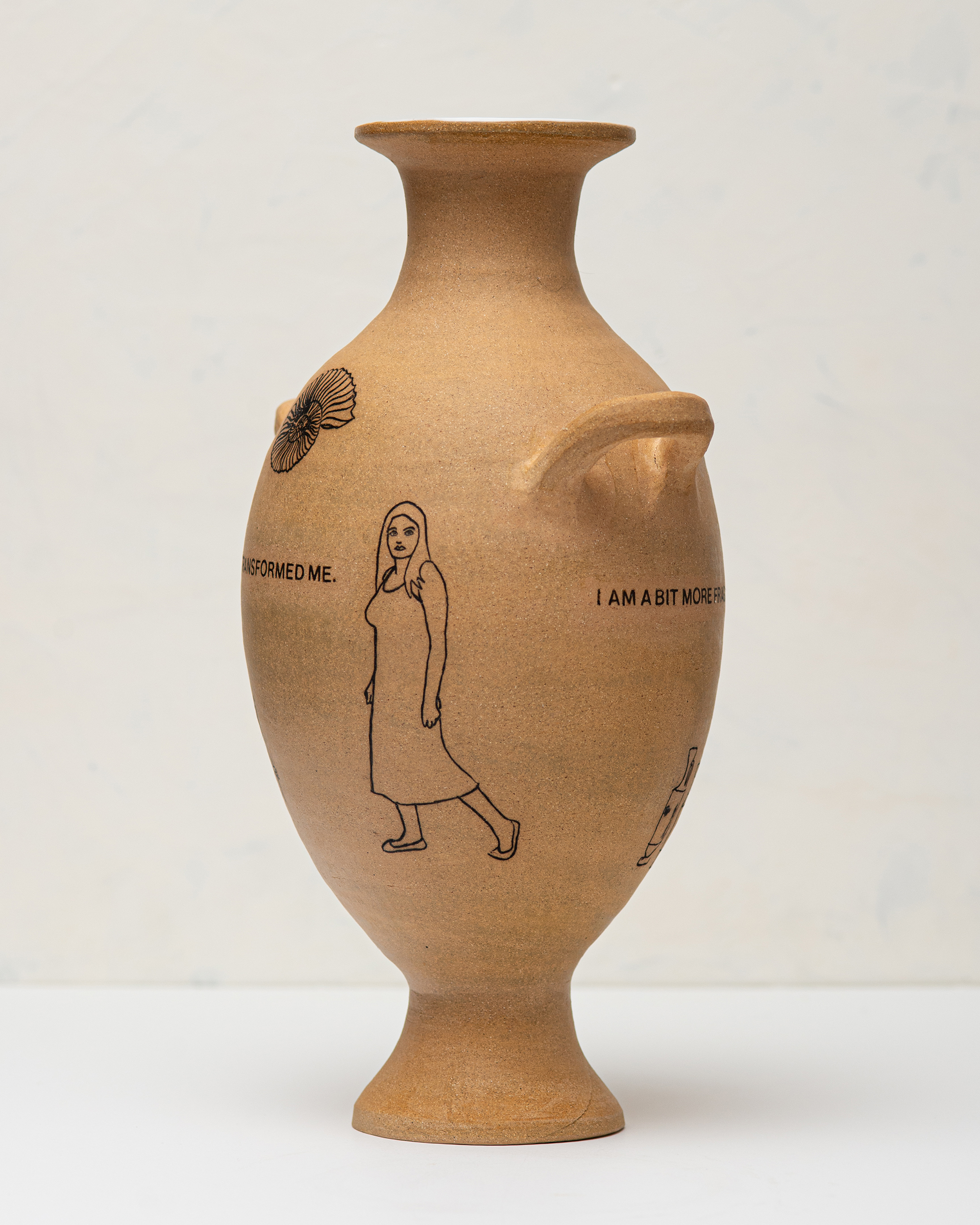 In the Expired series, ceramic vessels stand in for the body over time. The works address aging, mortality, endurance, relevance, and use through inscribed text and form. Rather than framing aging as decline, the vessels hold evidence of living, accumulation, damage, and persistence, while acknowledging finitude. Time is registered as something carried and endured, not erased.