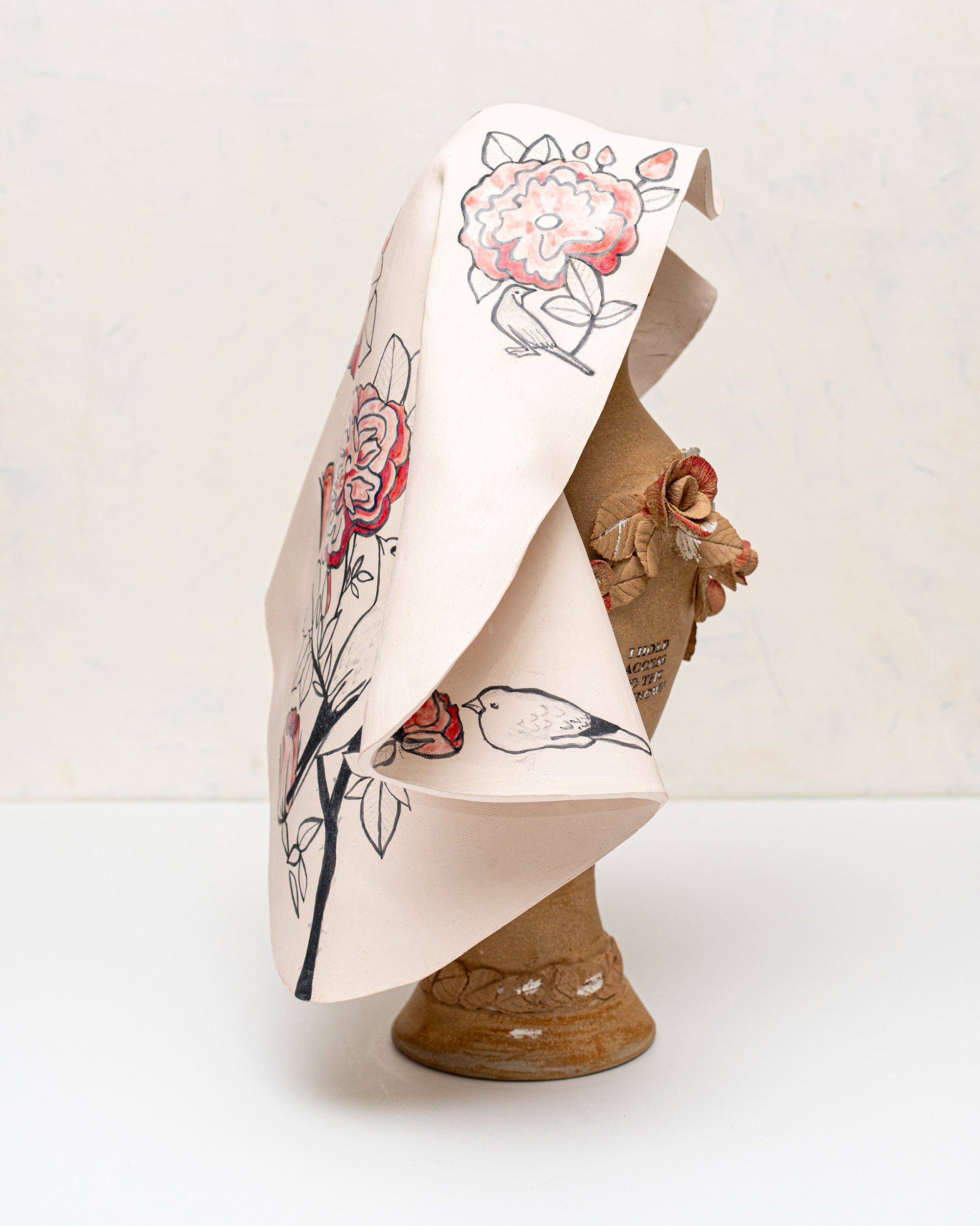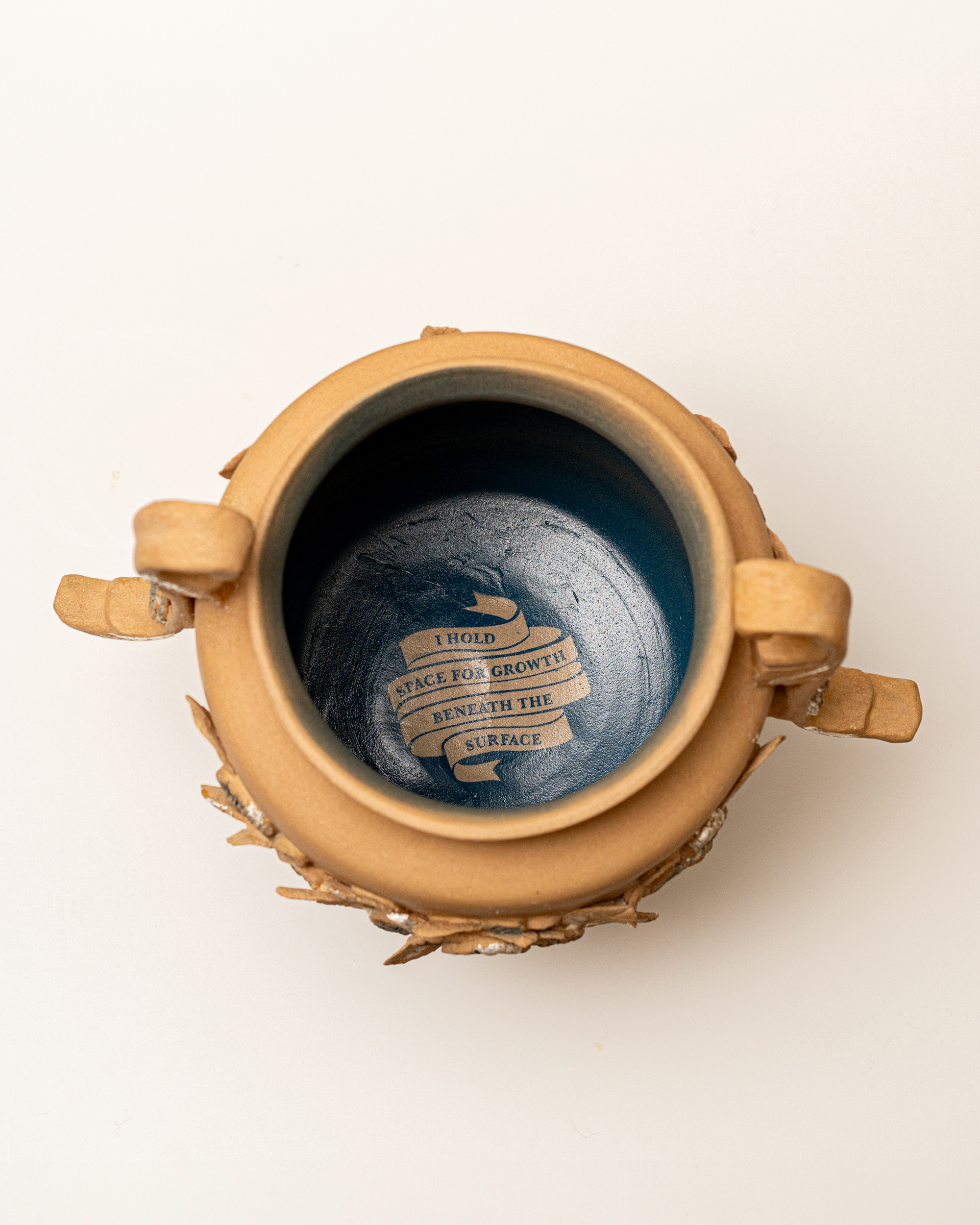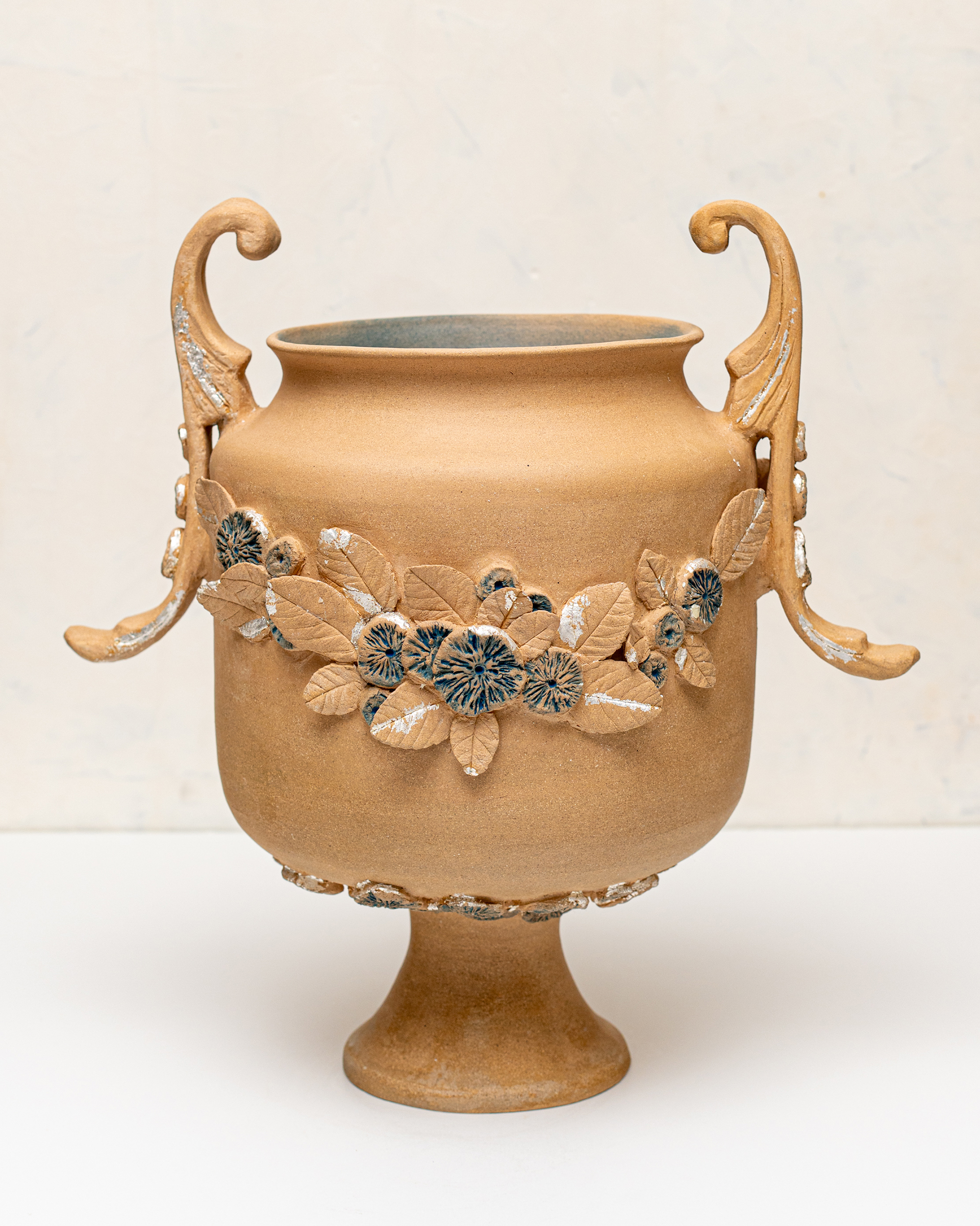 In Ritual Matter, I work with classical ceramic forms such as urns, vessels, and offering plates. The series emerged from a psychedelic experience and centers on beauty and the garden as metaphor. The work includes gilded garden urns blooming with fungi, offering plates bearing spore prints, and vessels that articulate a held sense of sufficiency and connection.