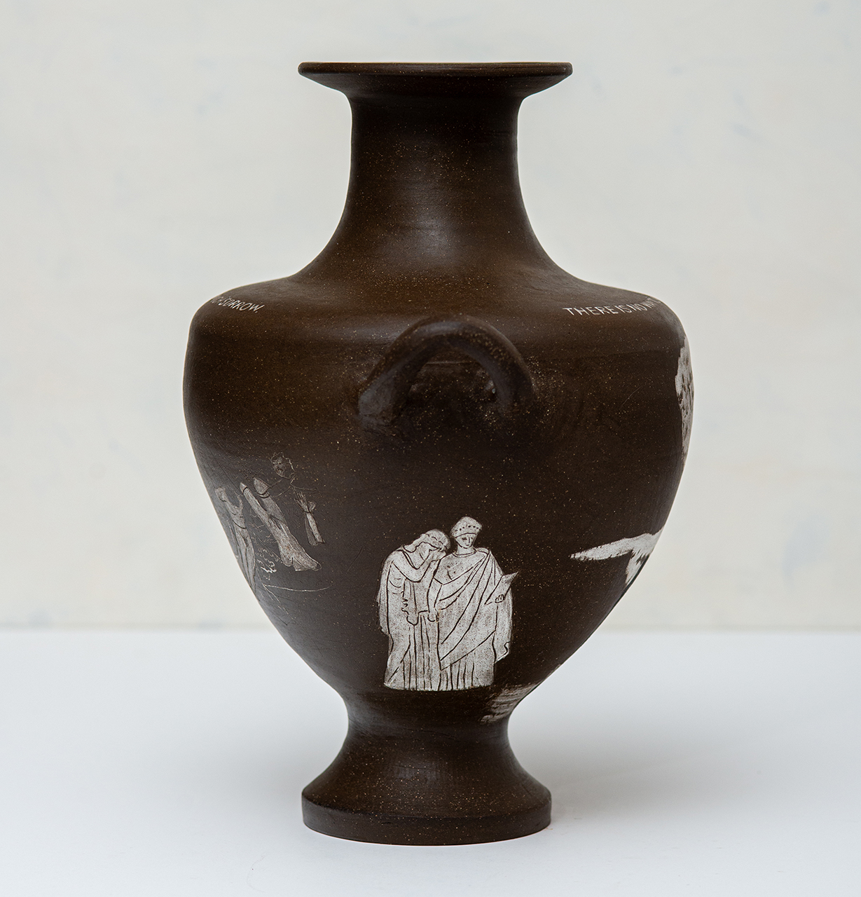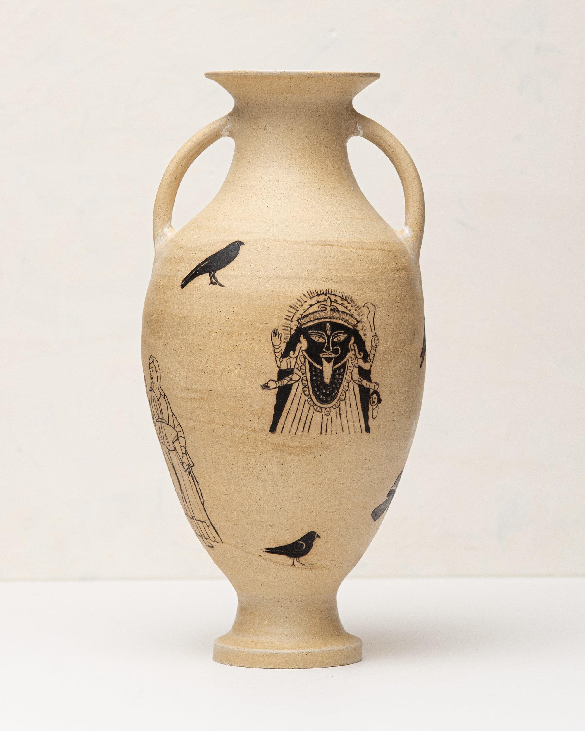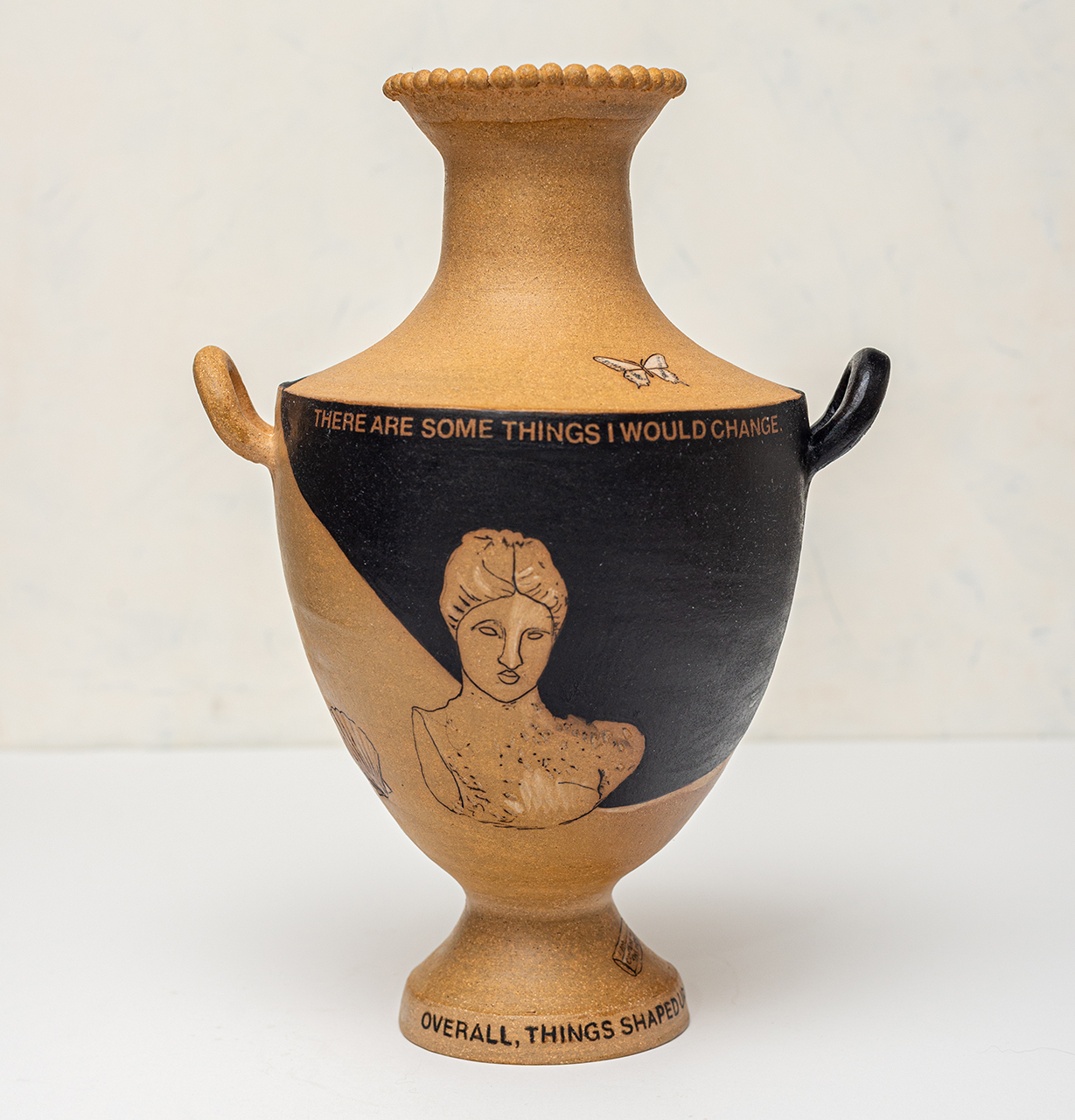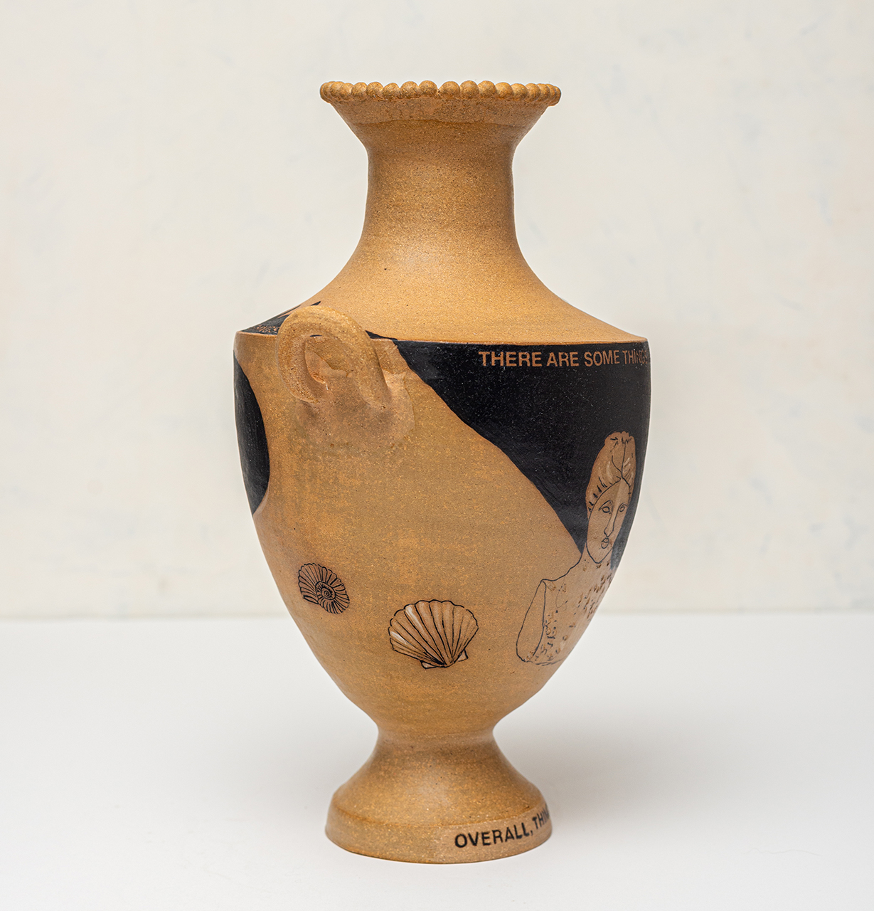 In Bearing Witness, I work with classical ceramic forms and art historical imagery to address the present. The vessels carry modern language and self representation across surfaces associated with permanence and authority, reframing inherited symbols of power. Text and drawing establish a narrative relationship between the self and the vessel, making history personal rather than distant.