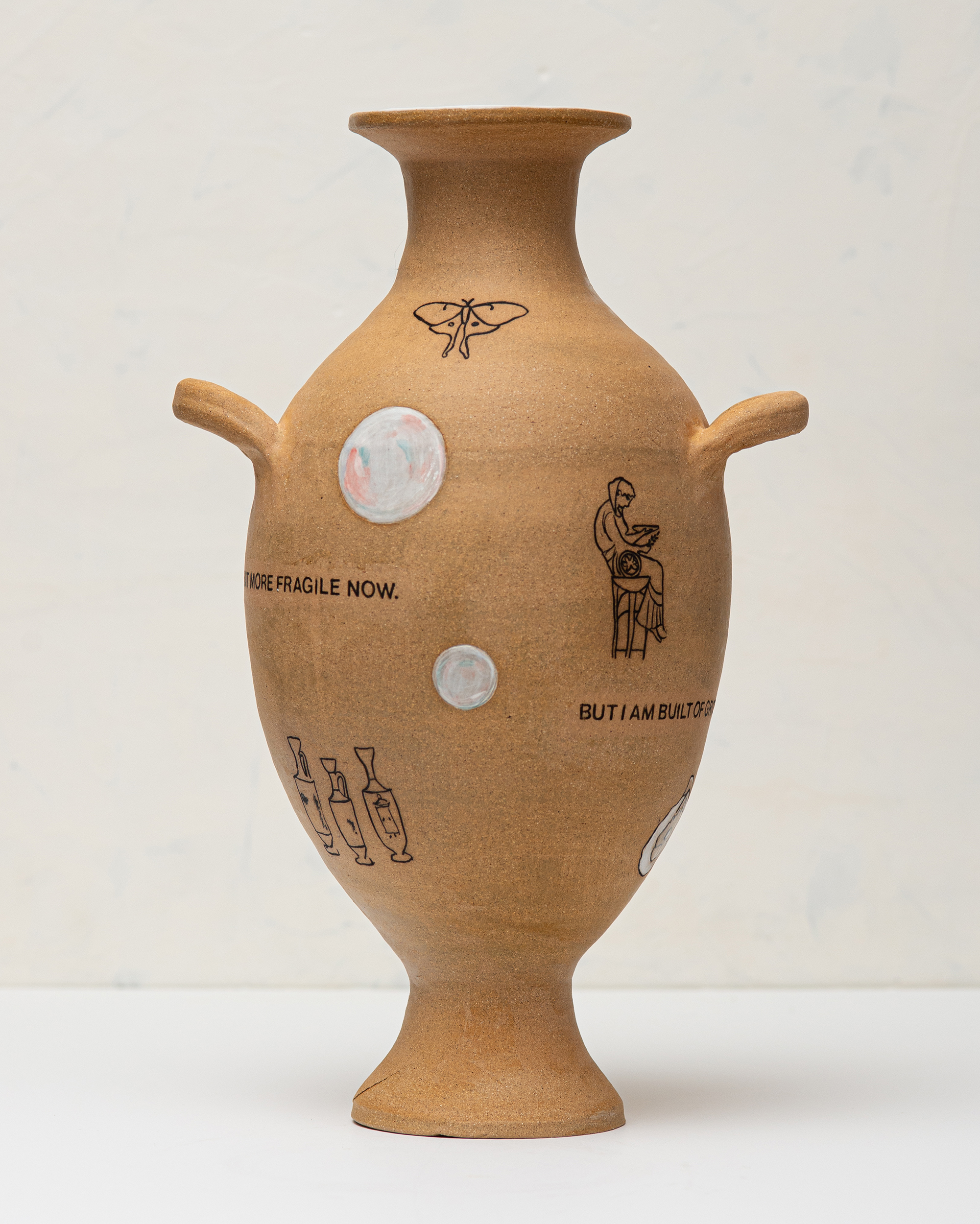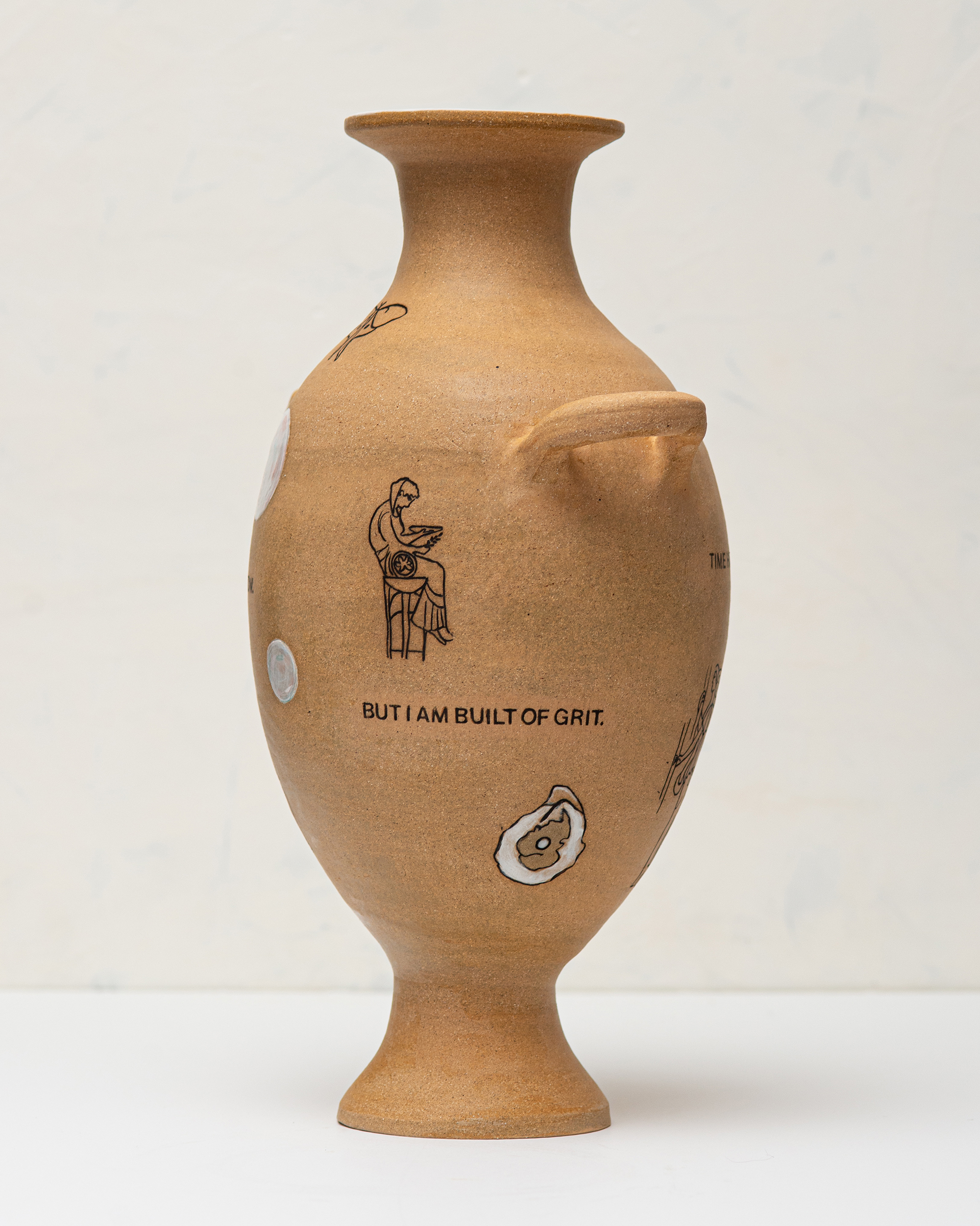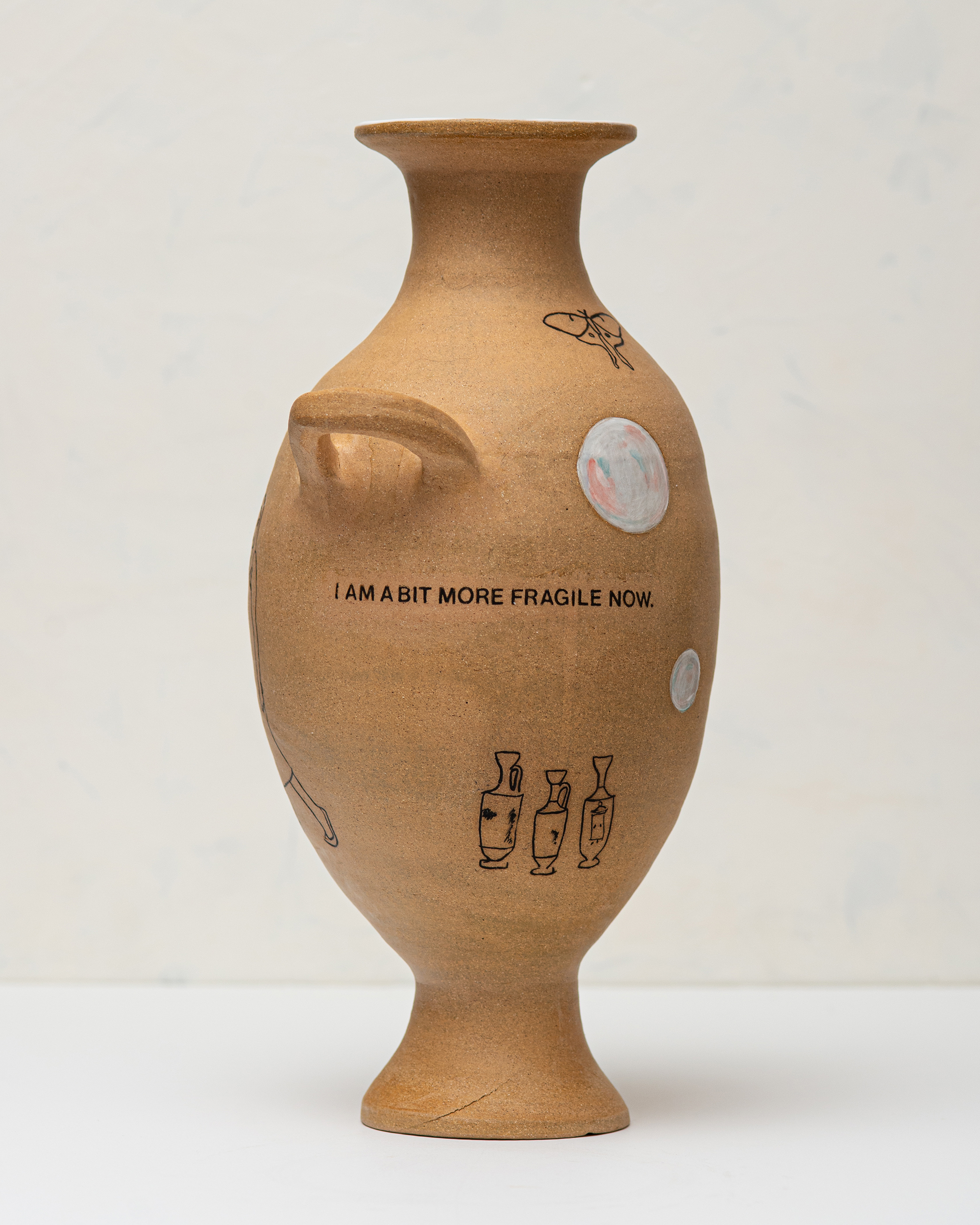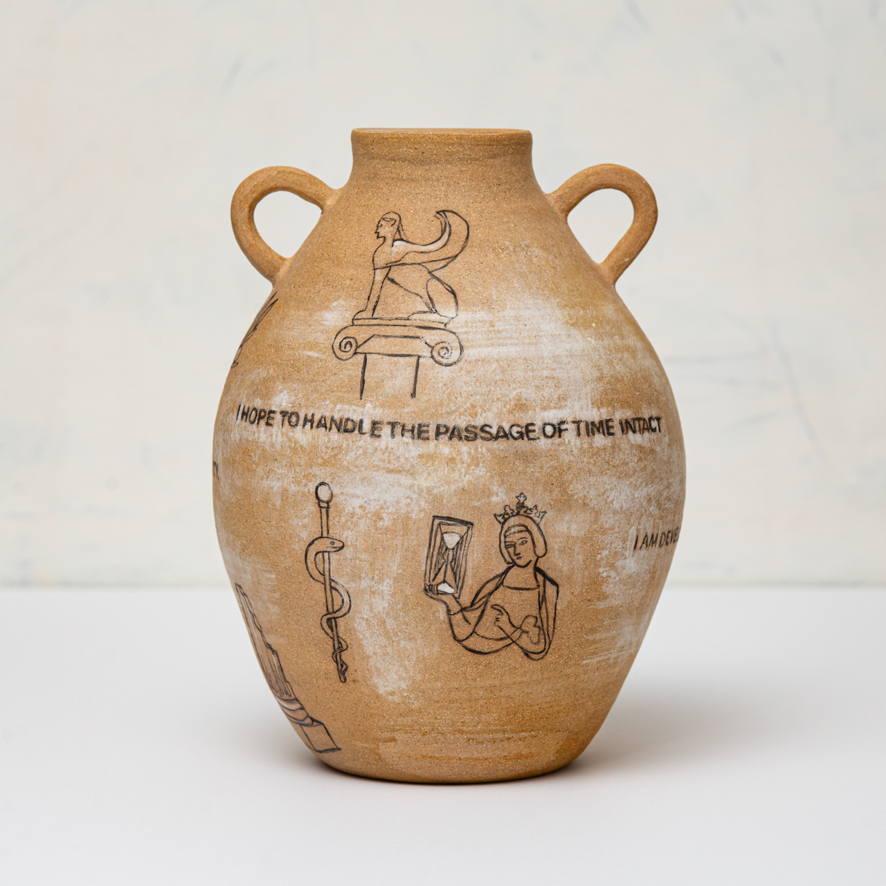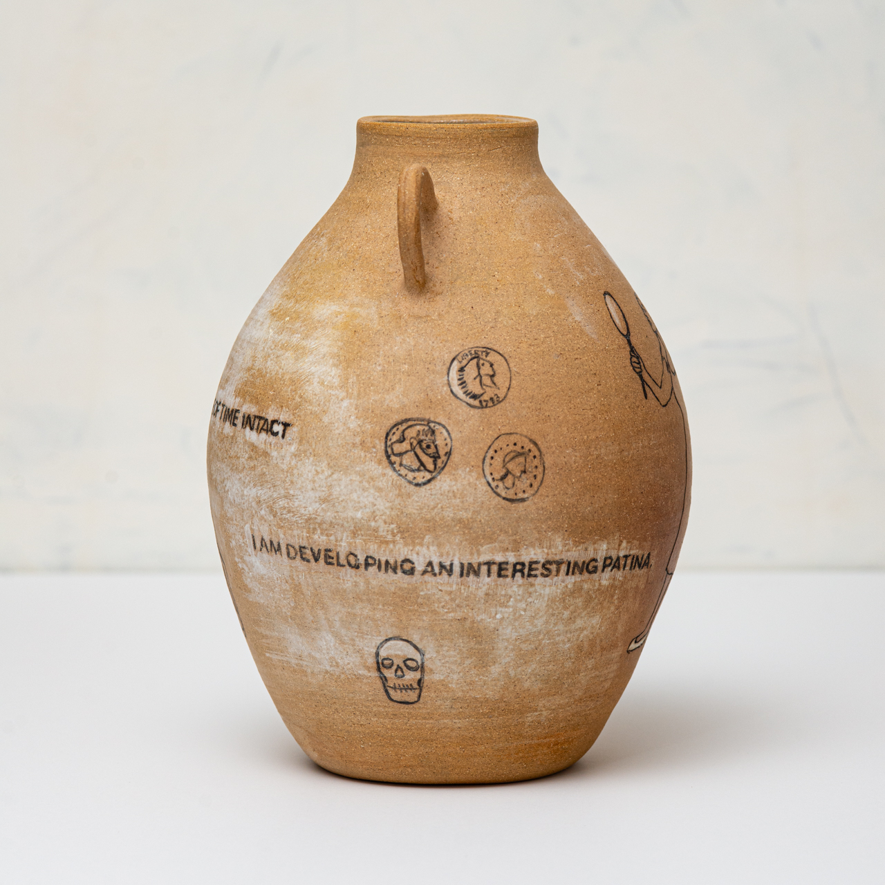 In the Expired series, ceramic vessels stand in for the body over time. The works address aging, mortality, endurance, relevance, and use through inscribed text and form. Rather than framing aging as decline, the vessels hold evidence of living, accumulation, damage, and persistence, while acknowledging finitude. Time is registered as something carried and endured, not erased.