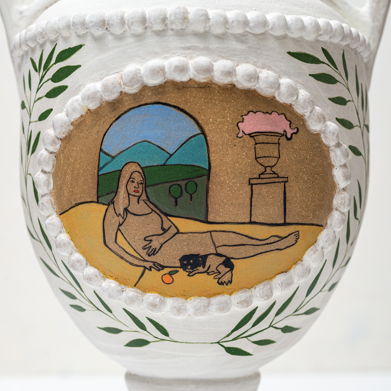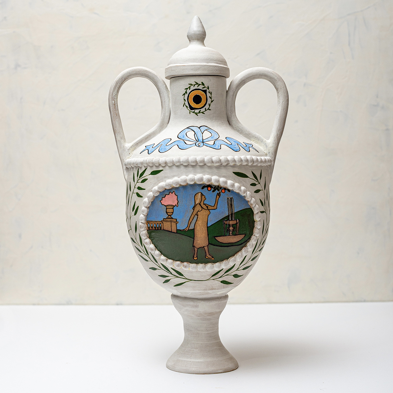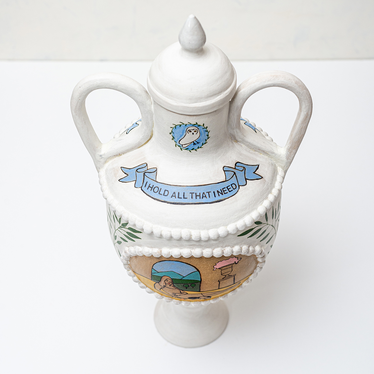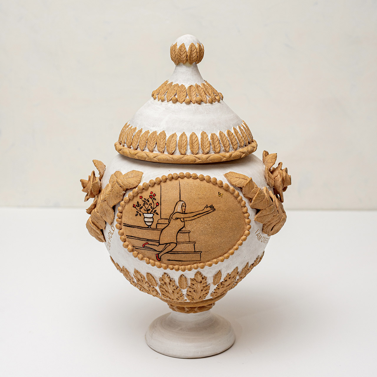 In Ritual Matter, I work with classical ceramic forms such as urns, vessels, and offering plates. The series emerged from a psychedelic experience and centers on beauty and the garden as metaphor. The work includes gilded garden urns blooming with fungi, offering plates bearing spore prints, and vessels that articulate a held sense of sufficiency and connection.