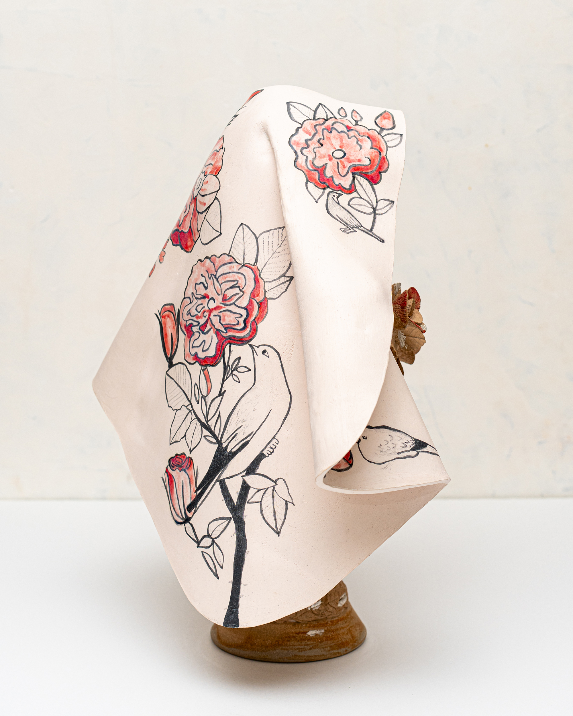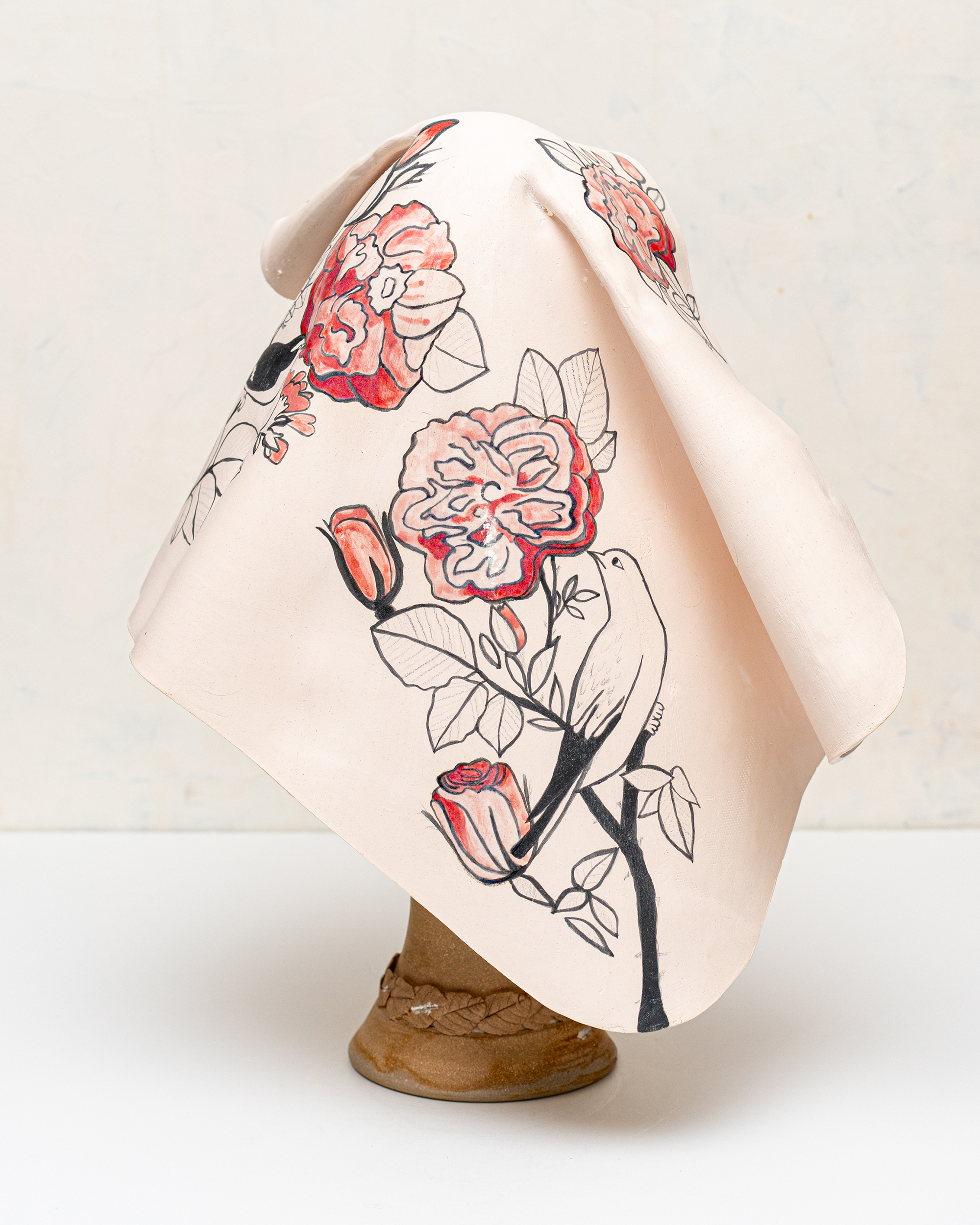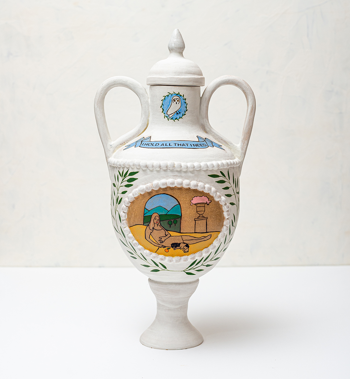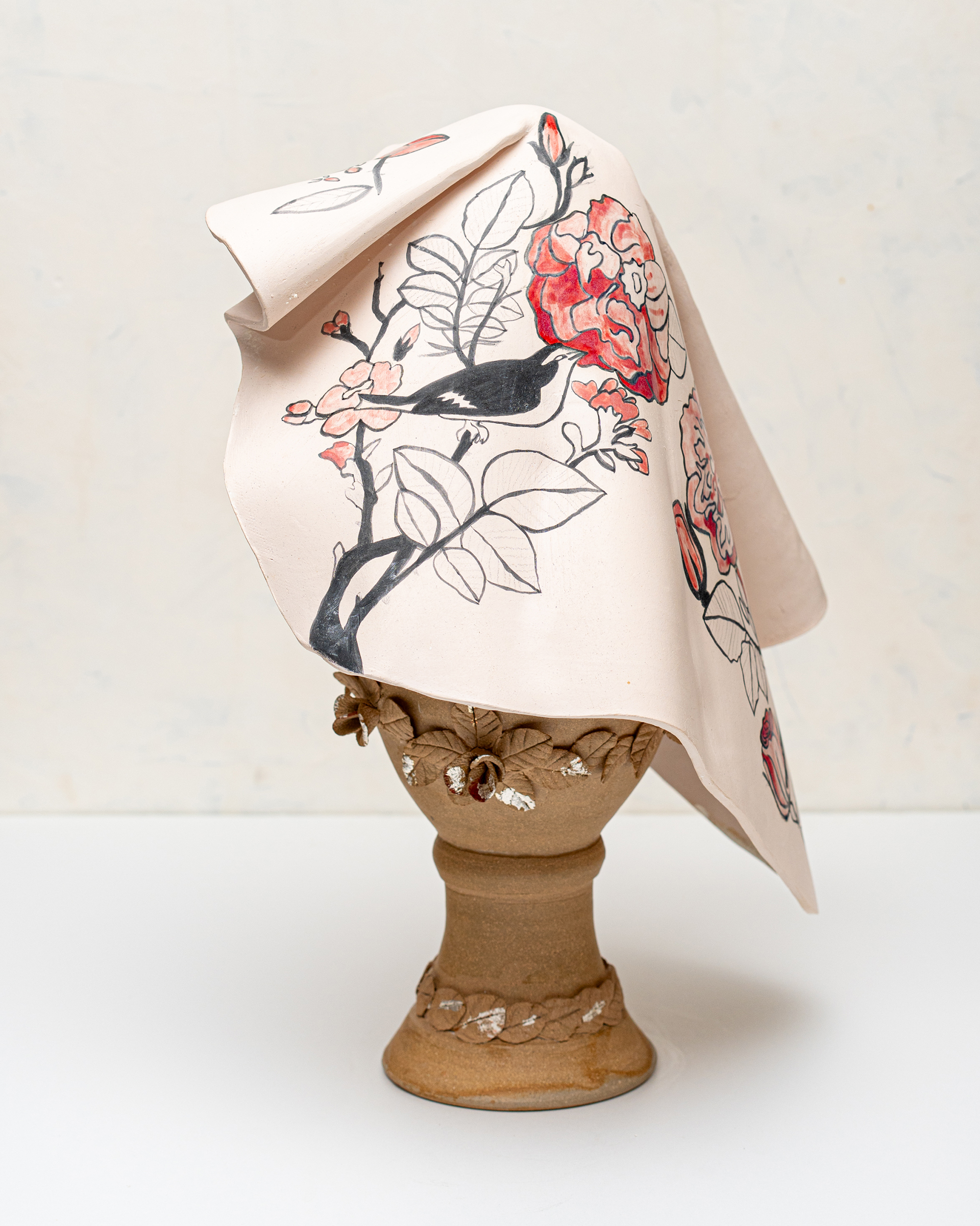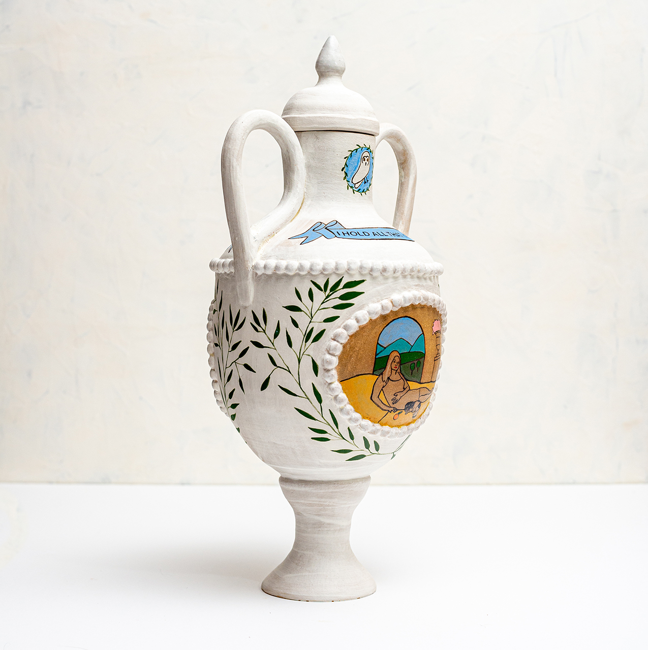 In Ritual Matter, I work with classical ceramic forms such as urns, vessels, and offering plates. The series emerged from a psychedelic experience and centers on beauty and the garden as metaphor. The work includes gilded garden urns blooming with fungi, offering plates bearing spore prints, and vessels that articulate a held sense of sufficiency and connection.